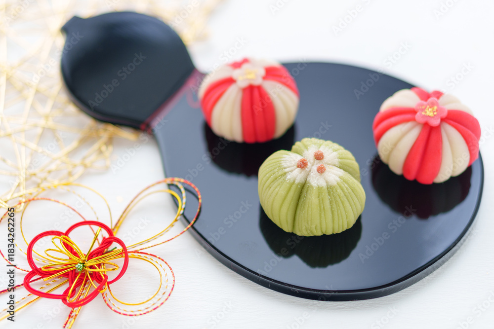 お正月の和菓子「正月手鞠」と「松」