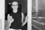 Smartphone, idea and woman by motel window for hospitality app, social media or vacation. Mobile, reflection and person in hotel room with thoughts, vision and thinking of text message on holiday