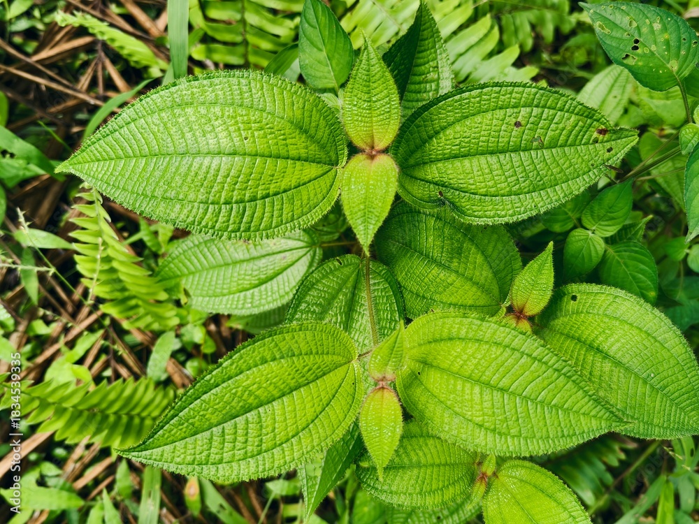 The Clidemia hirta plant grows wild in the tropical nature of Kalimantan