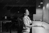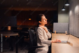 オフィスで暗くなるまで残業をして疲れる女性管理職