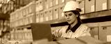 Warehouse worker working in warehouse storage. Foreman or worker work at factory site check up products in site. Inventory worker working in factory Storehouse