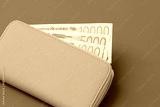 Yellow wallet and Japanese banknotes. Household finances, savings, good fortune, financial luck, deposits, property, expenses, budgets, etc. 黄色の財布と日本紙幣(お金)。家計、預金、幸運、金運、貯金、財産、出費、予算など
