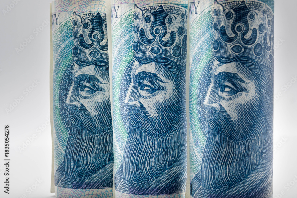 Polish currency, the złoty. The faces of Polish kings on banknotes.