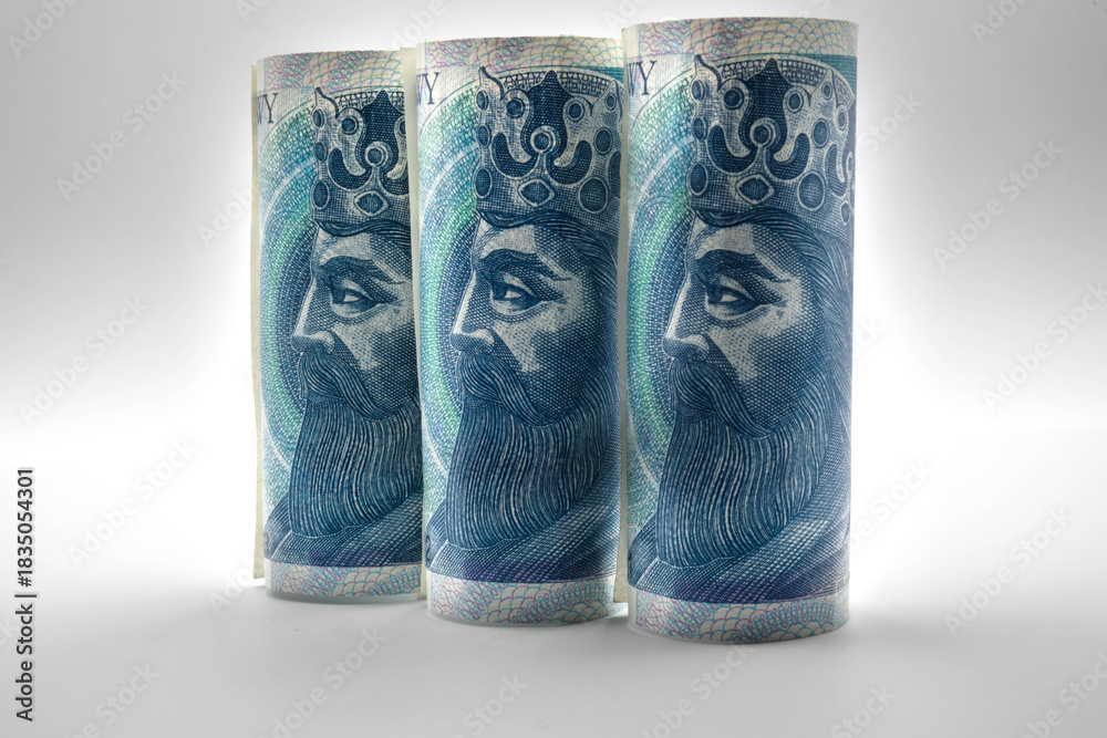 Polish currency, the złoty. The faces of Polish kings on banknotes.