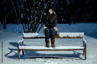 Girl smiling while looking at the snowing in the park