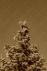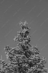 Evergreen conifer, Abies concolor or white fir with green needles and brown cones grows in park. Tree's crown is slightly sparse. Clouds Park. Krasnodar Public Park or Galitsky Park in Krasnodar.