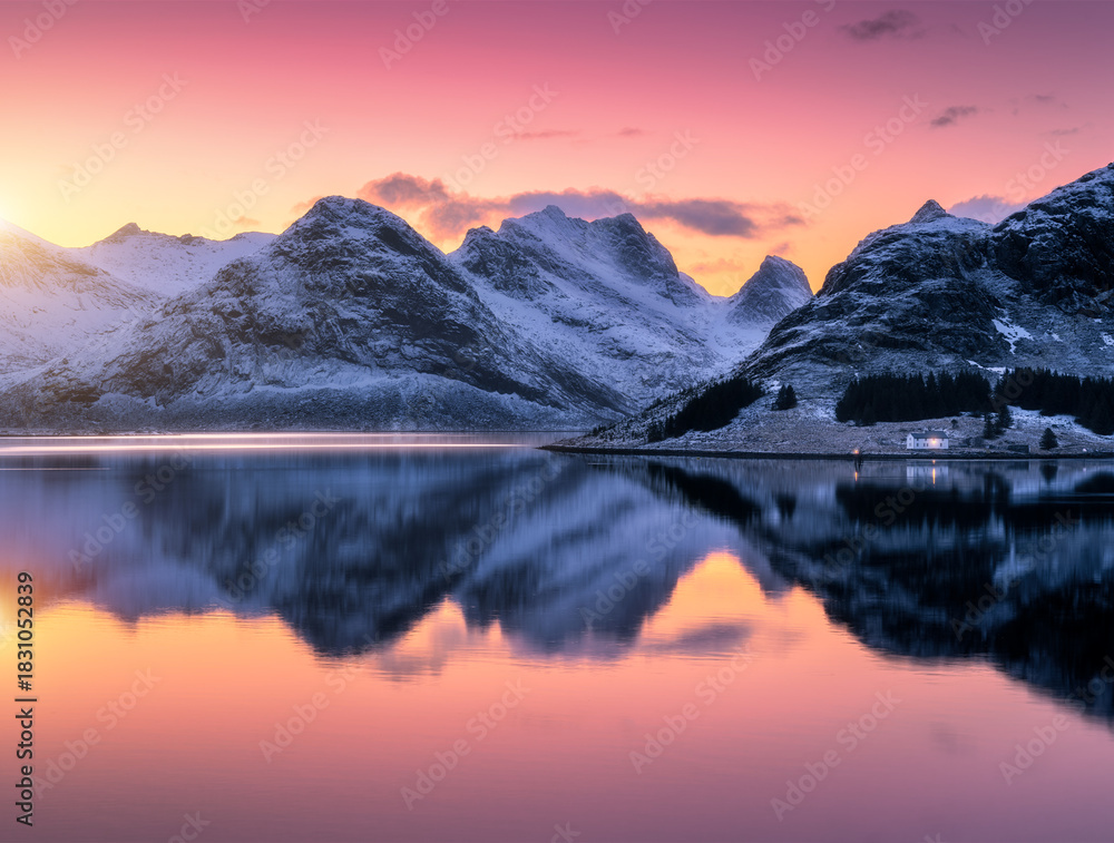 Aerial view of colorful umbrellas on crowded sandy beach, swimmers in blue sea, green trees on sunny summer day. Mallorca, Balearic Islands, Spain. Tropical top drone view. Turquoise water. Travel