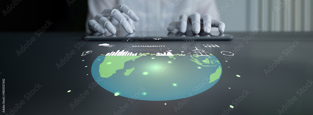 The concept of using AI for sustainability and green energy management. An AI vision for a smart city with renewable resources and a clean ecosystem. Motif