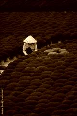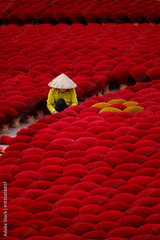 Traditional incense stick production in vietnamese village, vibrant red display