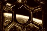 View of planet Earth from a space station window 3D rendering elements of this image furnished by NASA