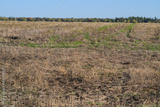 A vast agricultural field with dried crops under a beautiful blue sky in the background