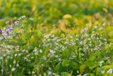 Gentle glow over quiet fields, Serene landscape illuminated by warm sunlight and calm breeze, Peaceful countryside bathed in golden light with relaxing atmosphere