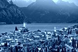 Town of Malcesine on Lago di Garda historic skyline view
