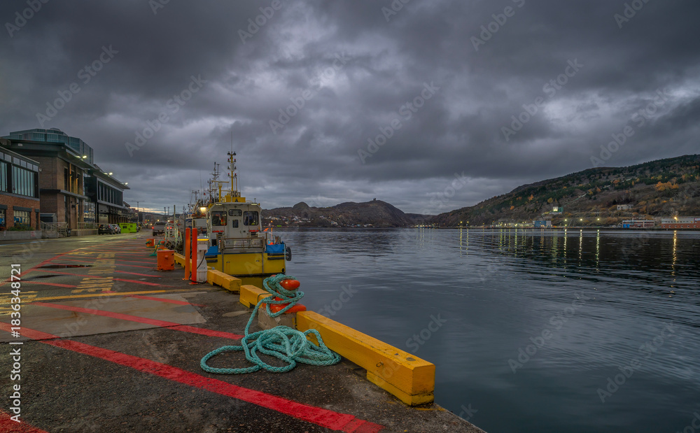 Morning view of pilot boat in the Saint John’s Harbour, Newfoundland and Labrador, Canada