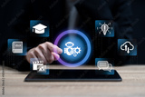 AI Training for Business development and Machine Learning Concept, Businesswomen use a tablet and AI Models with Automated Systems, Electronic book, New Idea, Data Management for Images, Videos