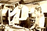Businessman showing something to colleague on desktop computer in office.