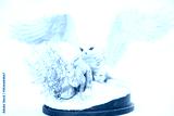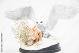 The owl is hunting rabbits on isolated background