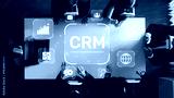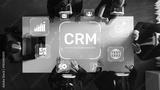 A business team collaborates on customer relationship management strategies using virtual reality technology. The top-down view captures teamwork and innovation in action. Raster