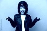 Young Argentinian woman with a motorcycle helmet isolated on blue background with shocked facial expression