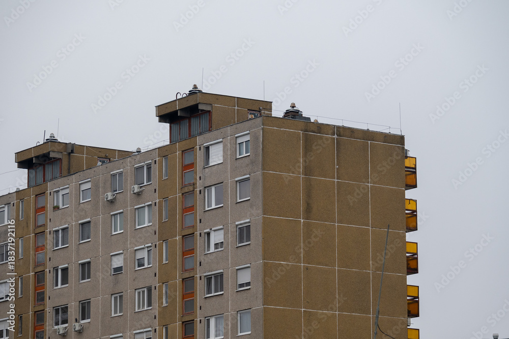 Modern Apartment Building Against Light Sky