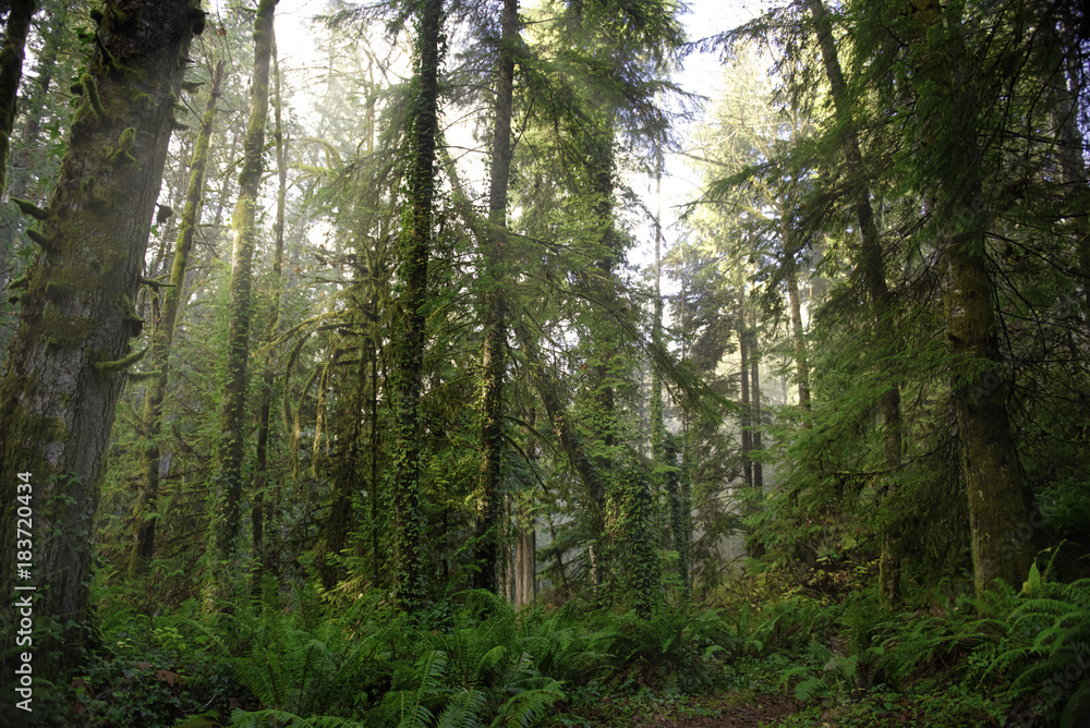 Old growth rain forest in Stocking Creek Waterfall park in Vancouver Island, British Columbia, Canada