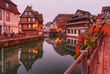 Traditional Alsatian half-timbered houses in Petite France with mirror reflections in the morning, Strasbourg, Alsace, France