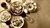 oroccan cuisine border with chicken tagine, vegetable couscous, orange salad