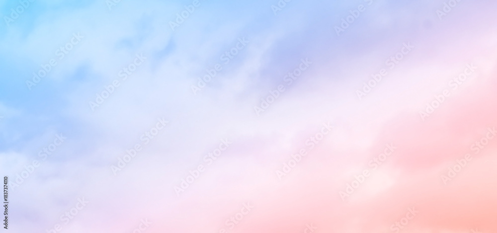 Sky purple orange pink blue pastel with white clouds. Soft sweet light sky.