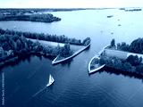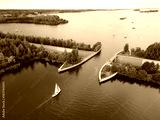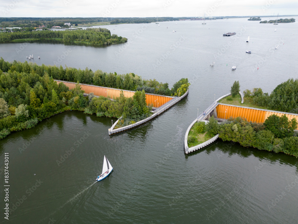 Drone view of the famous aquaduct near Harderwijk, The Netherlands