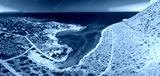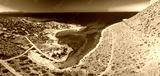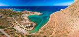 Aerial image of famous Stavros Zorbas beach, Crete Island, Greece, near Chania