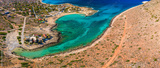 Aerial image of famous Stavros Zorbas beach, Crete Island, Greece, near Chania