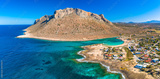 Aerial image of famous Stavros Zorbas beach, Crete Island, Greece, near Chania