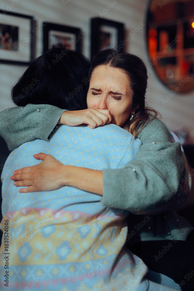 Sad Women Hugging and Comforting Each Other. Elderly relative offering emotional support for a person experiencing grief