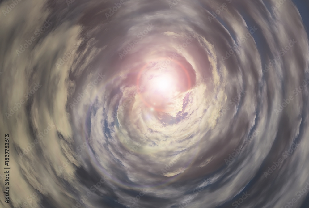Tunnel from clouds background texture watercolor fairy-tale design unusual colorful