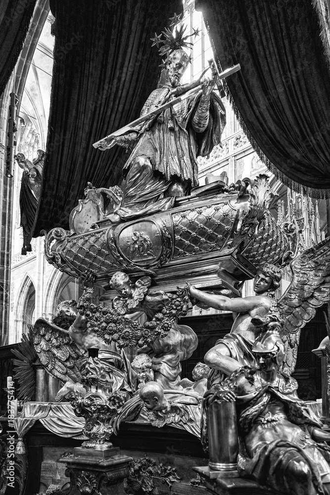 Ornate tomb in St. Vitus cathedral in Prague, Czech republic
