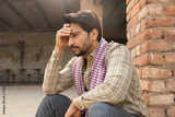 Young indian thoughtful sad man feeling alone. sadness, depression. Rural india. Unemployment