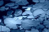 Grass snake (Natrix natrix Persa) ringed or water snake glides across vibrant green lily pads in a tranquil pond.