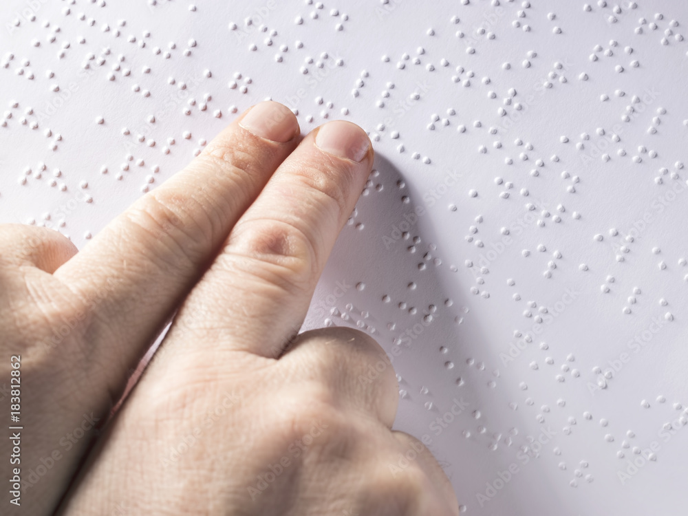 Cropped image of child using braille to read book at school