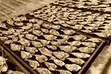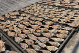 Sun dried fish on the wooden pier in the fishing village in Palau Ketam in Malaysia