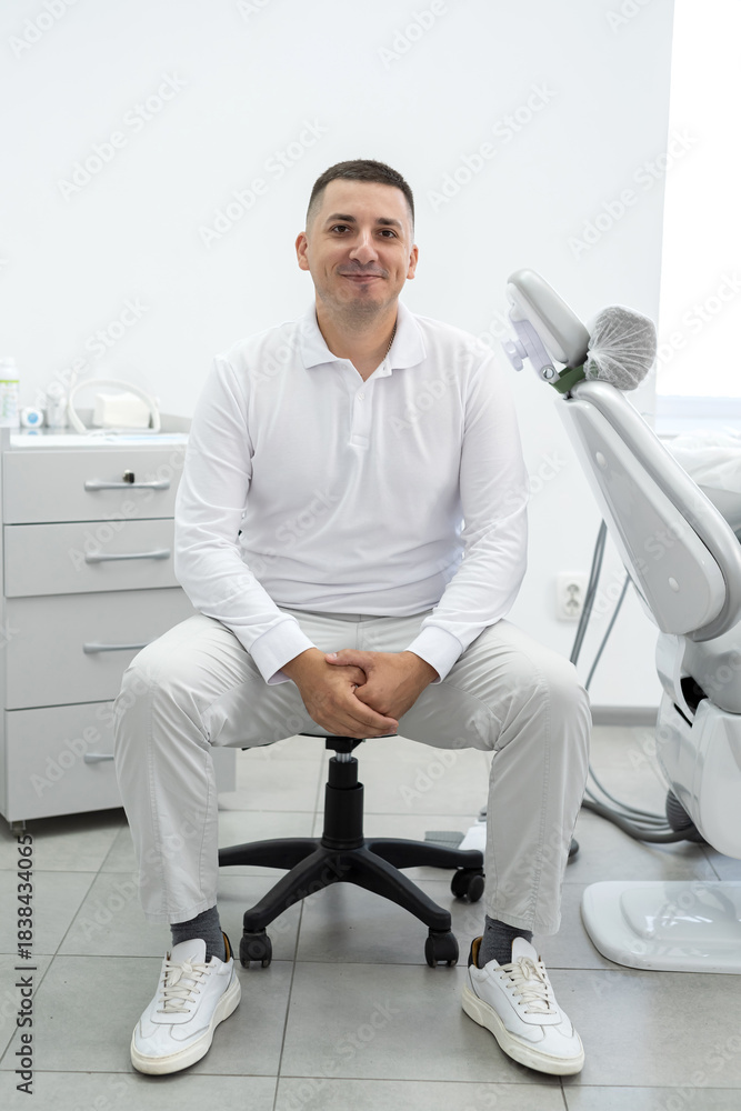 portrait of happy smiling male doctor looking at the camera in dental clinic. Healthcare concept