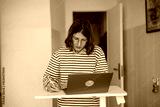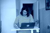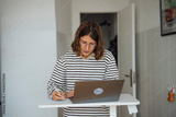 Female professional focused on organizing her remote work tasks