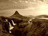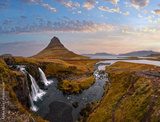 Famous picturesque Kirkjufell mountain and Kirkjufellsfoss waterfall next to Grundarfjörður at West Iceland autumn view.