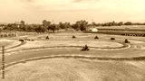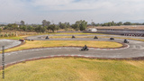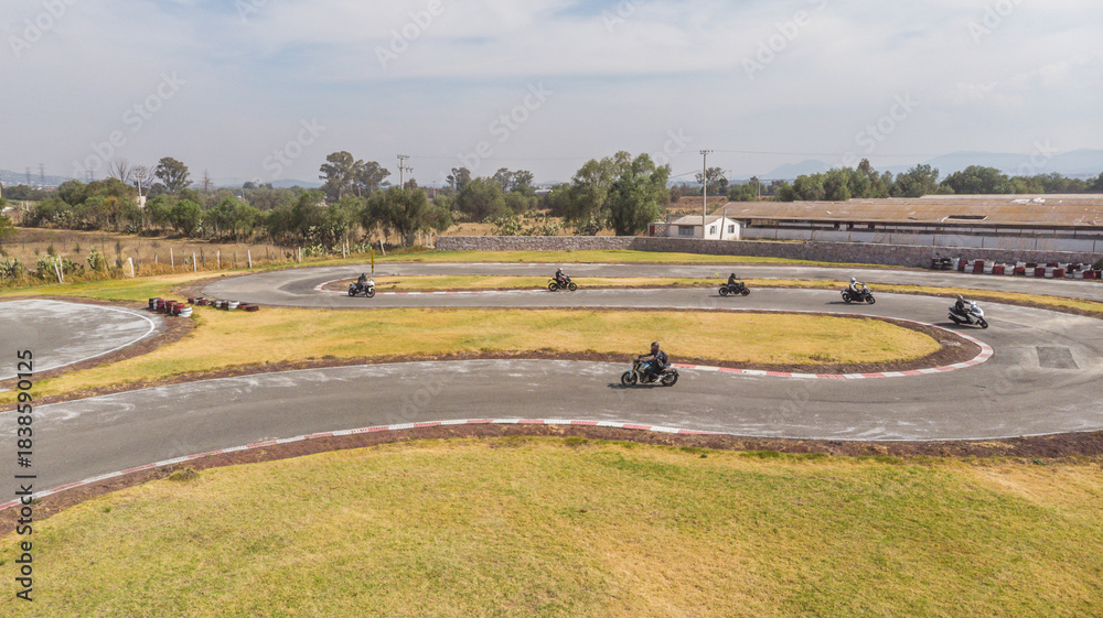 Motociclistas haciendo pruebas de manejo en pista de karting.