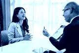 Job interview in office, resume writing tips, employer reviewing good cv of prepared skilled applicant, recruiter considering application, hr manager making hiring decision