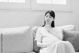 ソファーでくつろいでいる妊婦 ライフスタイルイメージ