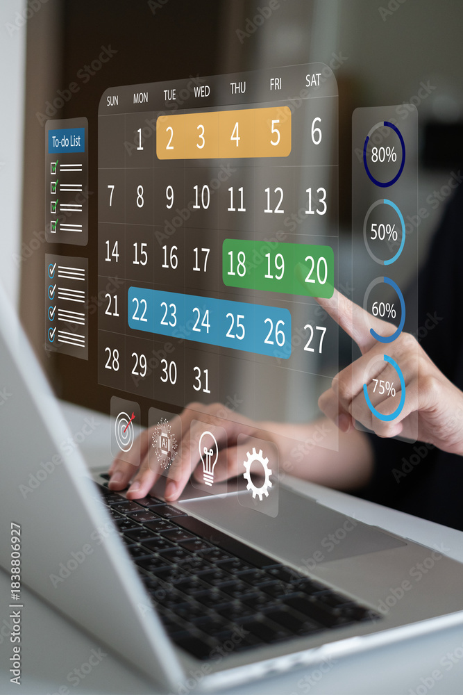Businessman working on schedule calendar planning meeting appointment reminder timeline task project time management event strategy organization concept