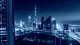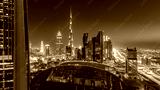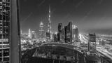 Dubai downtown skyline day to night timelapse with tallest building and Sheikh Zayed road traffic, UAE