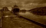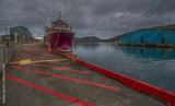 Moored ship and shipping containers in the harbour of Saint John’s , Newfoundland and Labrador, Canada
