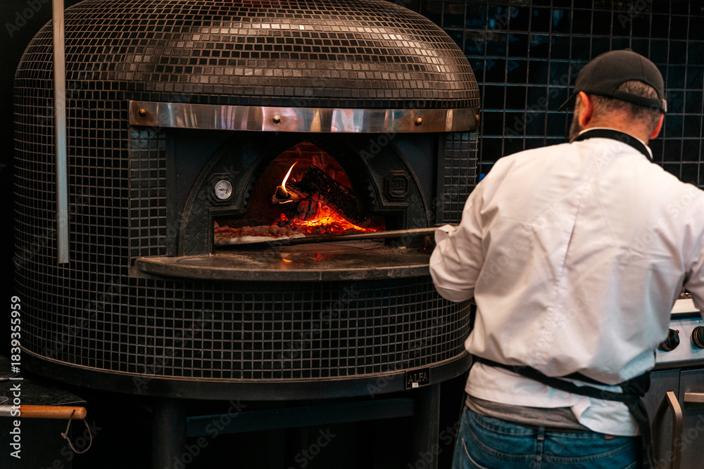 Traditional Italian Wood-Fired Pizza Oven with Flames