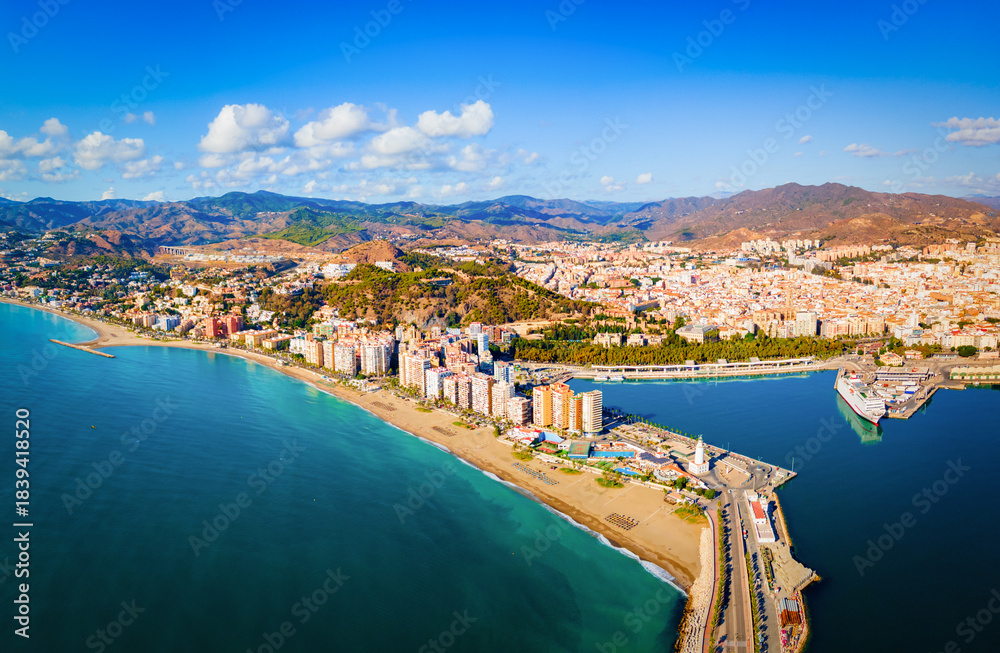 Malaga city aerial panoramic view in Andalusia, Spain